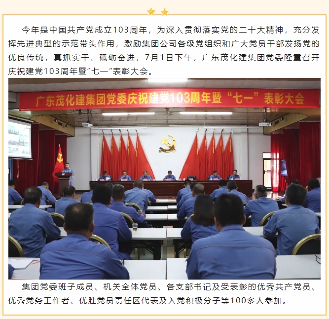 廣東茂化建集團黨委召開慶祝中國共產(chǎn)黨成立103周年暨“七一”表彰大會