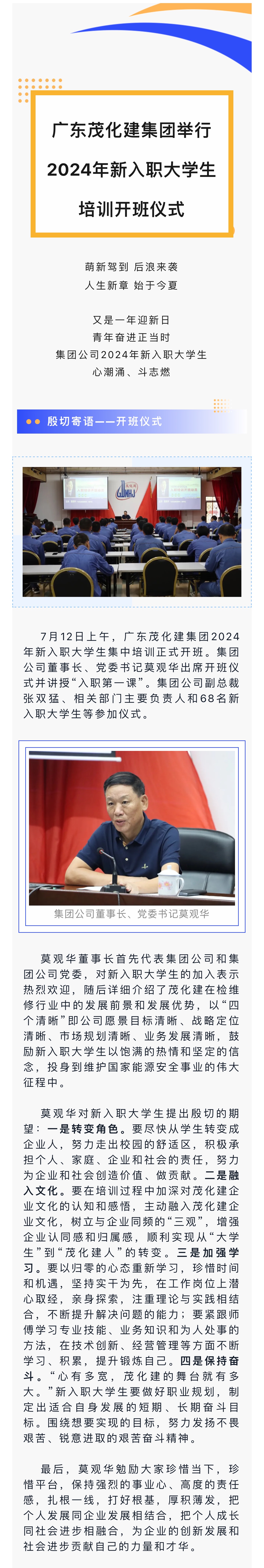 廣東茂化建集團舉行2024年新入職大學(xué)生培訓(xùn)開班儀式