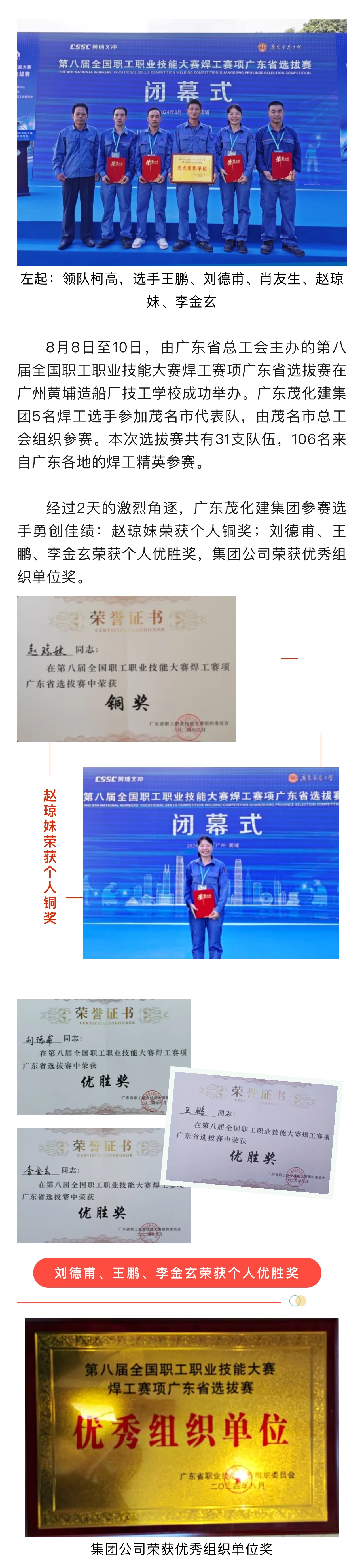 集團(tuán)公司參加第八屆全國職工職業(yè)技能大賽焊工項(xiàng)廣東省選拔賽創(chuàng)佳績