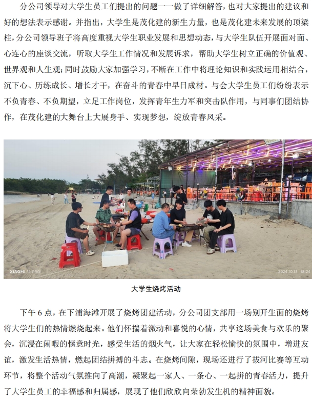洋浦分公司團(tuán)支部組織大學(xué)生座談會暨團(tuán)建活動