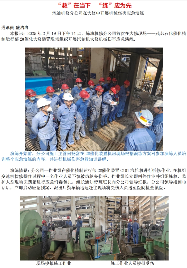 煉油機(jī)修分公司在大修中開(kāi)展機(jī)械傷害應(yīng)急演練