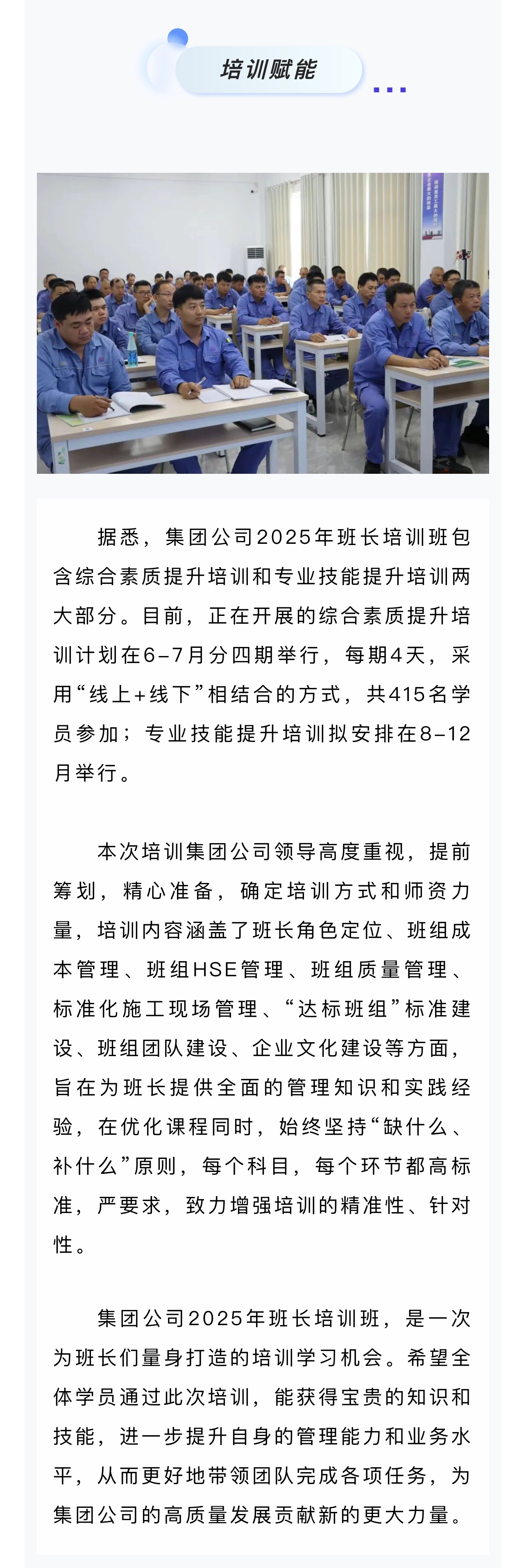 集團(tuán)公司2025年第一期班長(zhǎng)培訓(xùn)班順利開(kāi)班