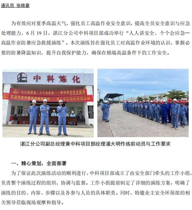 湛江分公司中科項目部開展高溫作業(yè)中暑應(yīng)急救援演練