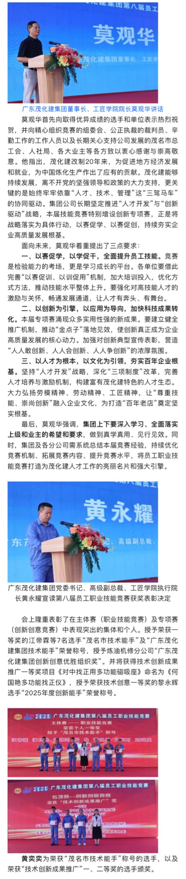 技能照亮前程,創(chuàng)新驅動未來!廣東茂化建集團第八屆員工職業(yè)技能競賽圓滿舉行