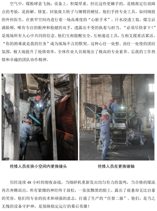 北海中科項目部輸儲煤裝置細碎機搶修攻堅戰(zhàn)