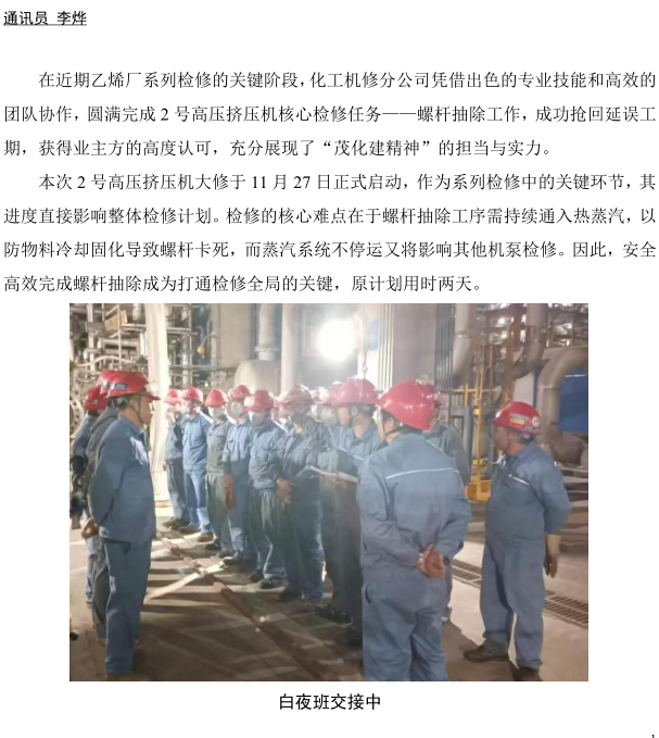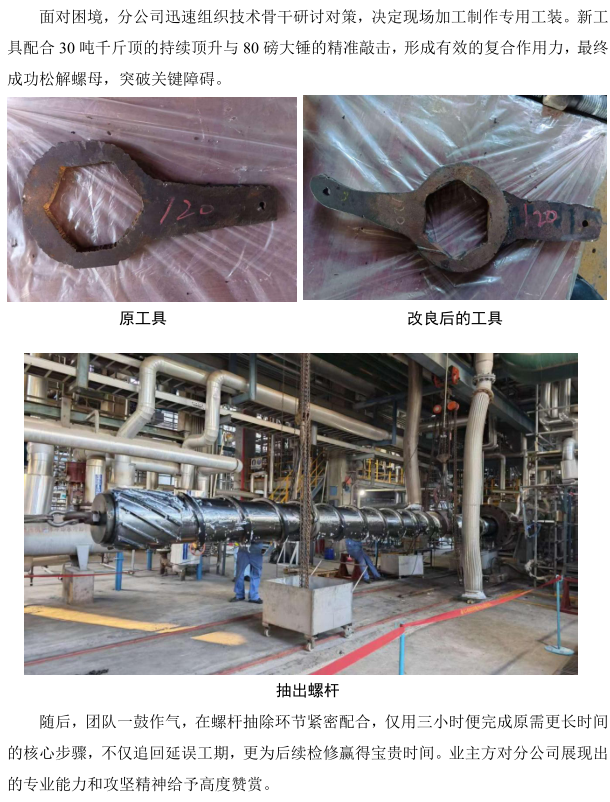 創(chuàng)新方法破解檢修難題,化工機(jī)修分公司三小時(shí)攻堅(jiān)獲贊譽(yù)