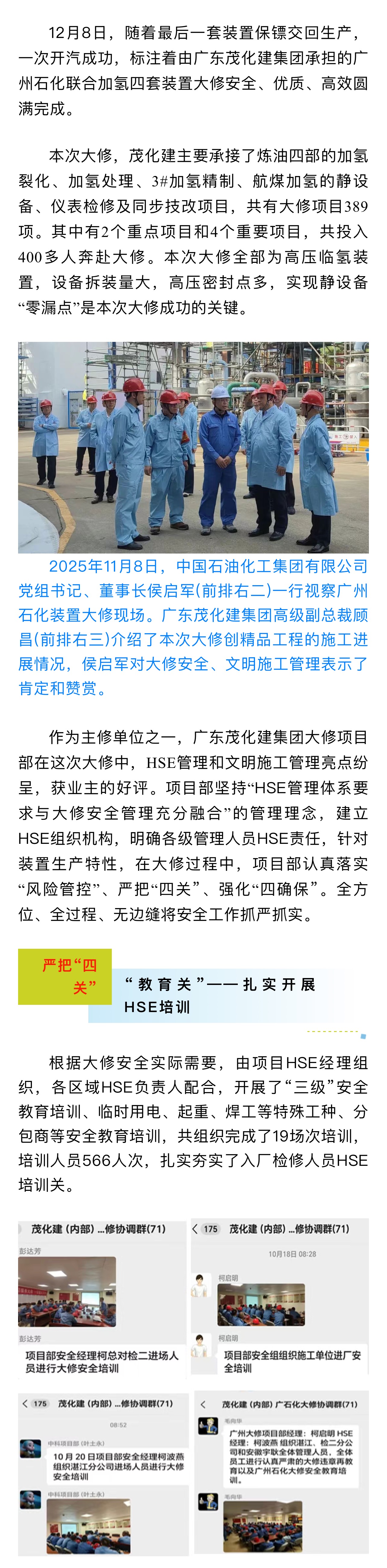 嚴(yán)把“四關(guān)” 強化“四確?!?| 廣東茂化建集團圓滿完成廣州石化大修