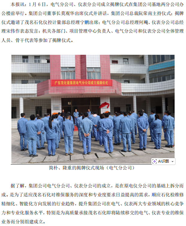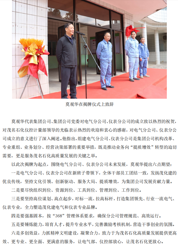 集團(tuán)公司舉行電氣分公司、儀表分公司成立揭牌儀式