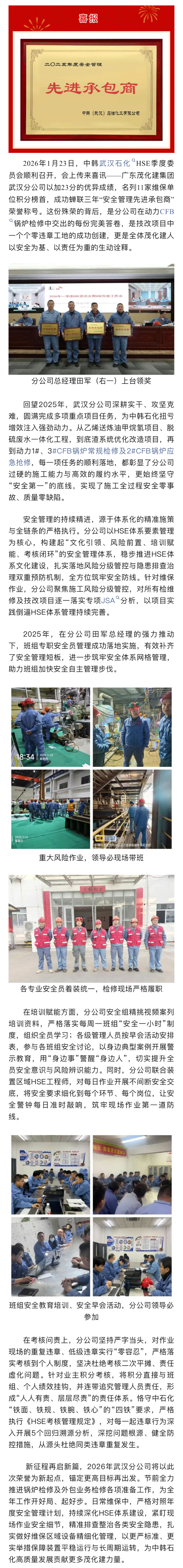 喜報 | 榮獲中韓(武漢)石化"2025年度安全管理先進承包商”稱號